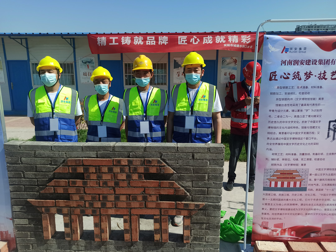 5月16日,由安陽(yáng)市住建局、安陽(yáng)市城建交通水利工會(huì)共同舉辦的“匠心筑夢(mèng) 技藝傳承”2022年度安陽(yáng)市建筑行業(yè)工匠技能展示活動(dòng)在安陽(yáng)師范學(xué)院教學(xué)實(shí)驗(yàn)綜合樓項(xiàng)目工地舉行。集團(tuán)公司常務(wù)副總楊金貴、副總經(jīng)理王福民、王超帶隊(duì)參加了活動(dòng)。